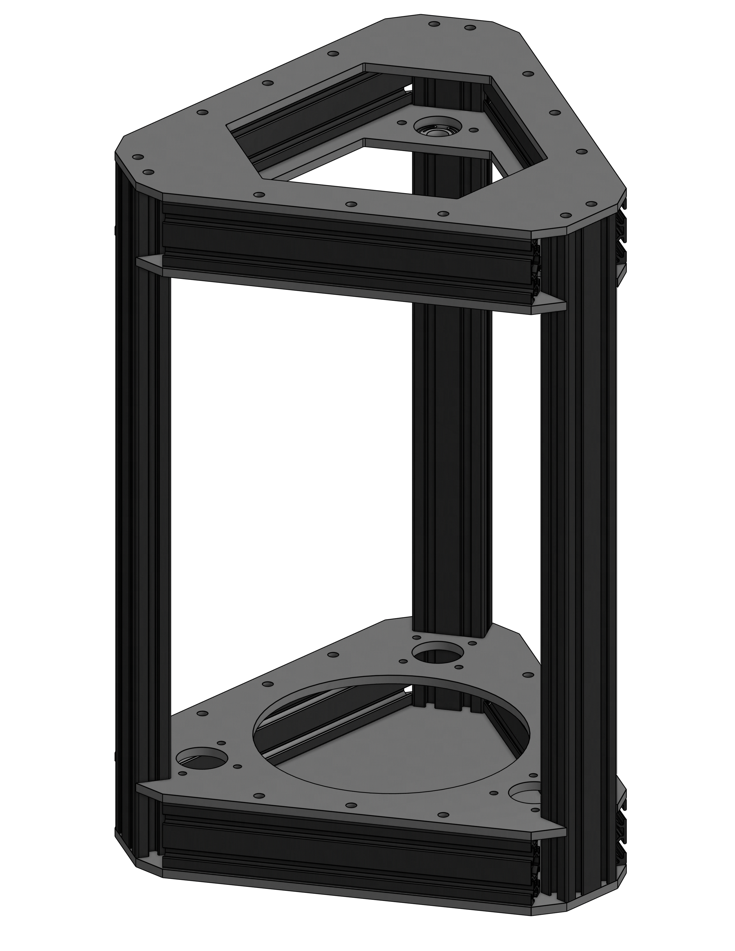 I figured, since I’ll need mounting holes anyway, why not just make a flat piece that mounts to the extrusions? And then I didn’t want things to be cantilevered, so…it ended up being this. This will likely be lasercut out of acrylic since that’s cheap, but it’s designed for aluminum. If I have the funds & time, I’m going to try and get it made out of aluminum.